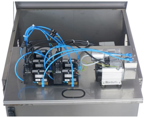 Kompakt utførelse med kabinett i rustfritt eller syrefast stål med kjøling/oppvarming og plass for opp til 12 prøveflasker.